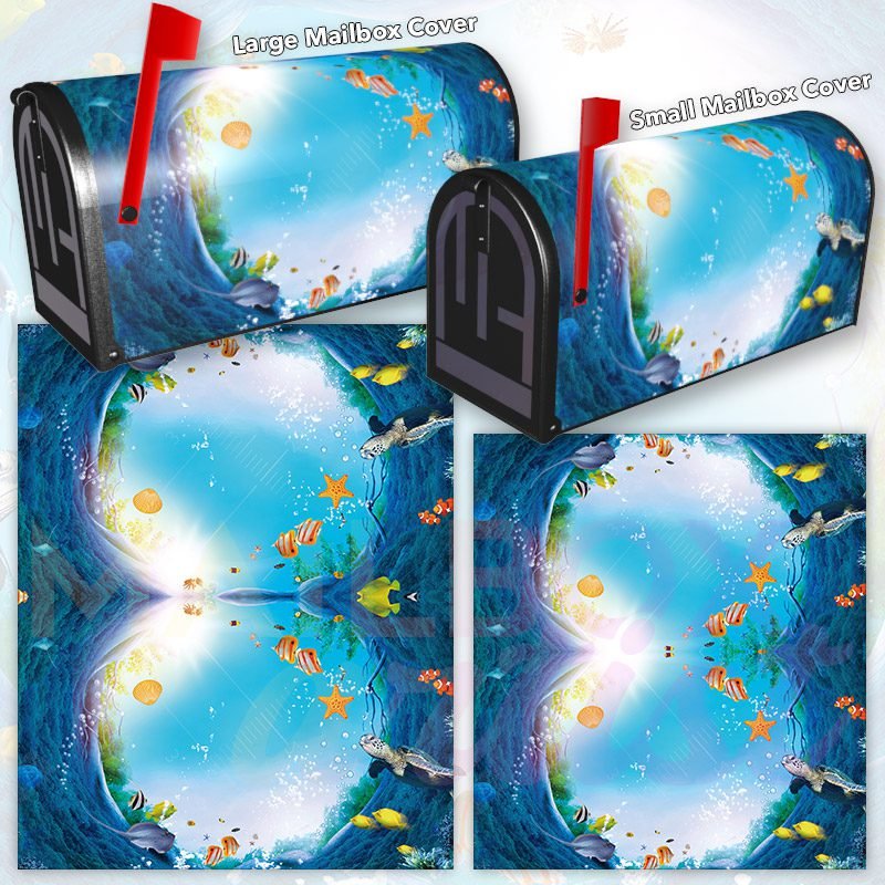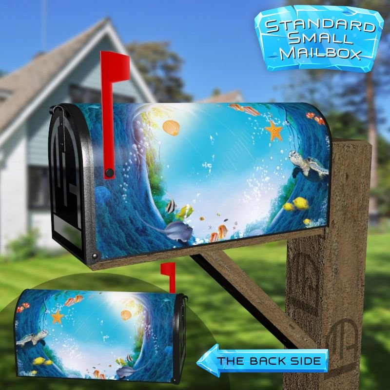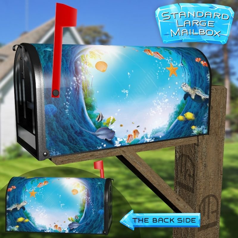 Dressing up your rural farm mailbox with the Underwater Fantasy mailbox cover is an easy way to convert it into a unique and special item. These covers require a smooth surface, so they are compatible with rural farm mailboxes that do not have any embossed decorations or signs. Magnetic mailbox covers work with steel boxes only, while self-adhesive vinyl covers are available for aluminum, plastic and steel boxes. If your mailbox is not compatible with these covers, you can purchase a brand new mailbox with a preinstalled cover. Additionally, you have the option to create a custom rural farm mailbox cover with your own pictures, name, street number, etc.