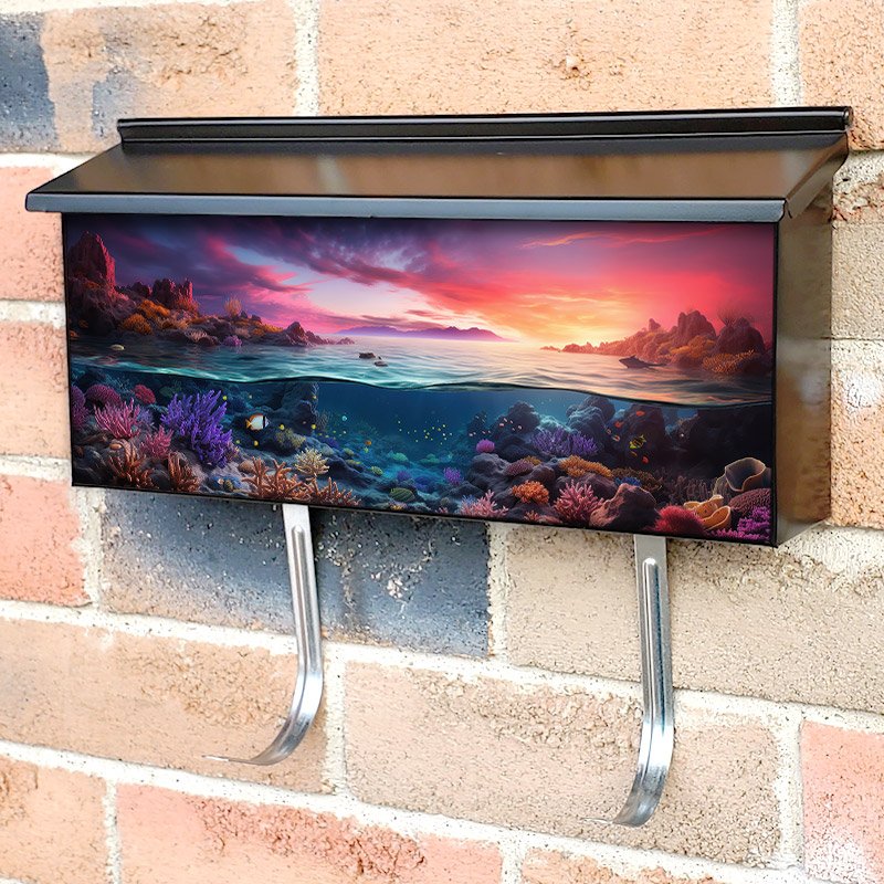 Applying your Underwater Picture Of Beautiful Sea Reef townhouse / ranch mailbox cover it’s pretty easy to convert your mailbox to a special and unique item. These covers require a flat surface, so they work with townhouse / ranch mailboxes that do not have any embossed decoration or signs. Magnetic mailbox covers work with steel boxes, for aluminum and plastic boxes we offer the self-adhesive vinyl covers. In case your mailbox doesn’t work with these covers, you can purchase the preinstalled cover on a brand new mailbox as well. Also, you can create your custom townhouse / ranch mailbox cover using you own pictures, adding your name, street number, etc.