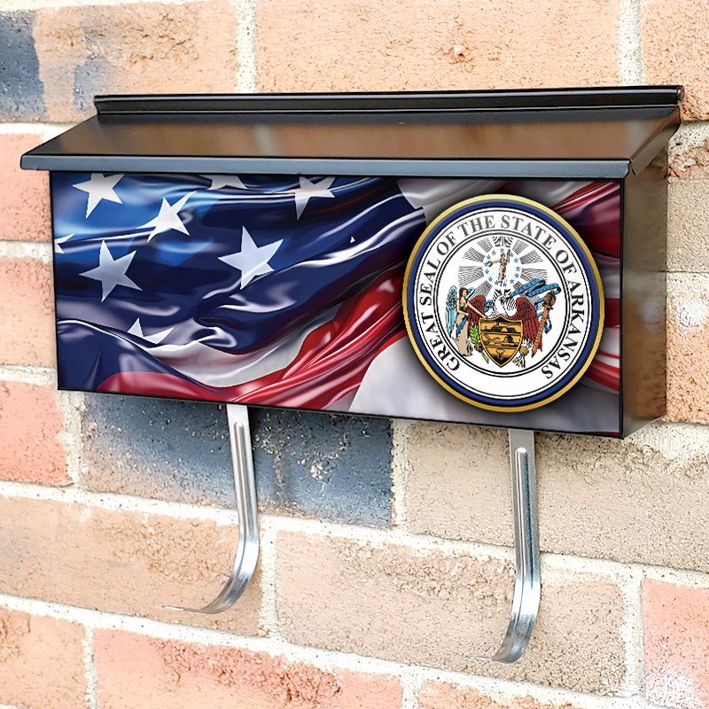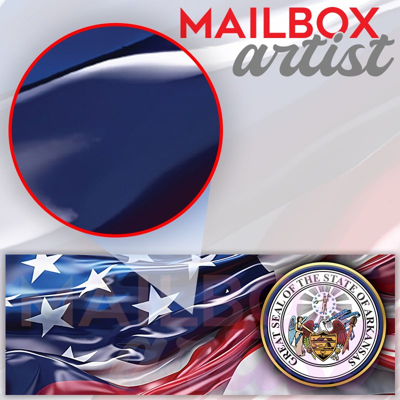 Applying your US States Arkansas State Seal townhouse / ranch mailbox cover it’s pretty easy to convert your mailbox to a special and unique item. These covers require a flat surface, so they work with townhouse / ranch mailboxes that do not have any embossed decoration or signs. Magnetic mailbox covers work with steel boxes, for aluminum and plastic boxes we offer the self-adhesive vinyl covers. In case your mailbox doesn’t work with these covers, you can purchase the preinstalled cover on a brand new mailbox as well. Also, you can create your custom townhouse / ranch mailbox cover using you own pictures, adding your name, street number, etc.