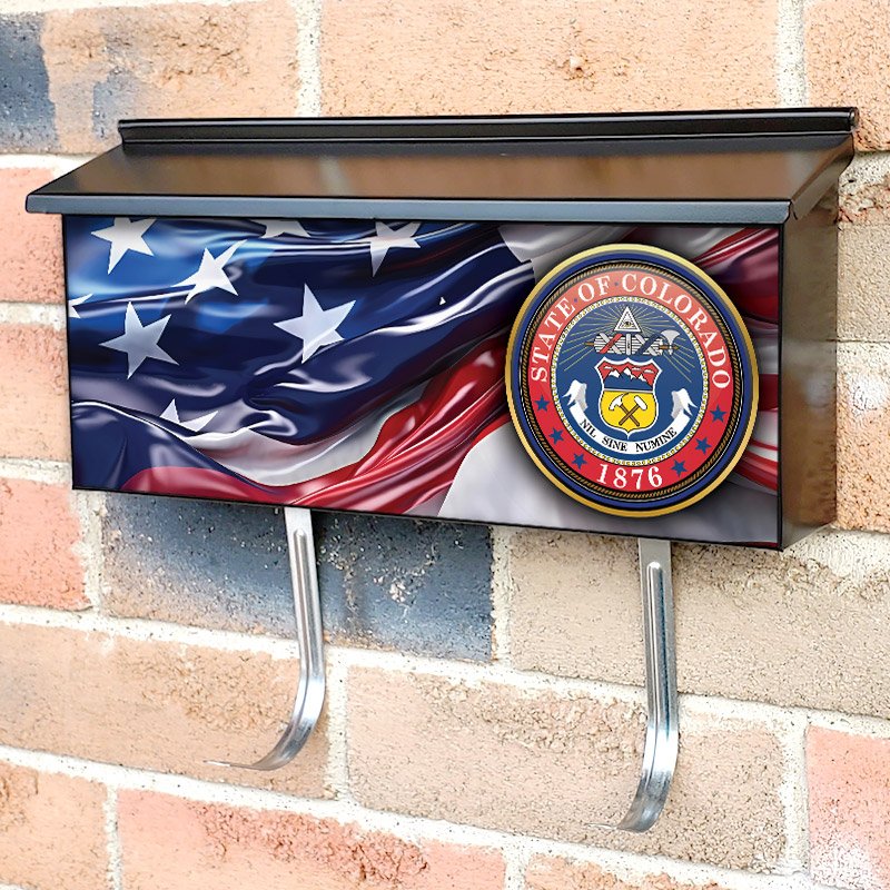 Applying your US States Colorado State Seal townhouse / ranch mailbox cover it’s pretty easy to convert your mailbox to a special and unique item. These covers require a flat surface, so they work with townhouse / ranch mailboxes that do not have any embossed decoration or signs. Magnetic mailbox covers work with steel boxes, for aluminum and plastic boxes we offer the self-adhesive vinyl covers. In case your mailbox doesn’t work with these covers, you can purchase the preinstalled cover on a brand new mailbox as well. Also, you can create your custom townhouse / ranch mailbox cover using you own pictures, adding your name, street number, etc.