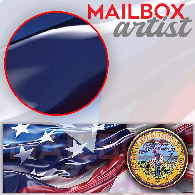 Applying your US States Iowa State Seal townhouse / ranch mailbox cover it’s pretty easy to convert your mailbox to a special and unique item. These covers require a flat surface, so they work with townhouse / ranch mailboxes that do not have any embossed decoration or signs. Magnetic mailbox covers work with steel boxes, for aluminum and plastic boxes we offer the self-adhesive vinyl covers. In case your mailbox doesn’t work with these covers, you can purchase the preinstalled cover on a brand new mailbox as well. Also, you can create your custom townhouse / ranch mailbox cover using you own pictures, adding your name, street number, etc.