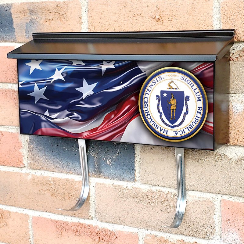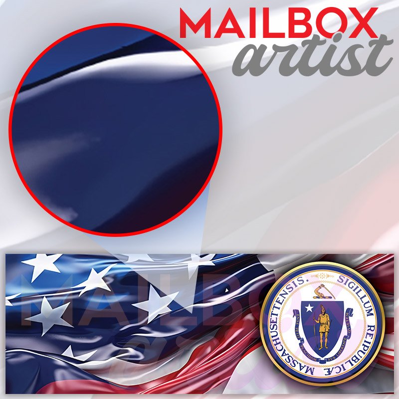 Applying your US States Massachusetts State Seal townhouse / ranch mailbox cover it’s pretty easy to convert your mailbox to a special and unique item. These covers require a flat surface, so they work with townhouse / ranch mailboxes that do not have any embossed decoration or signs. Magnetic mailbox covers work with steel boxes, for aluminum and plastic boxes we offer the self-adhesive vinyl covers. In case your mailbox doesn’t work with these covers, you can purchase the preinstalled cover on a brand new mailbox as well. Also, you can create your custom townhouse / ranch mailbox cover using you own pictures, adding your name, street number, etc.