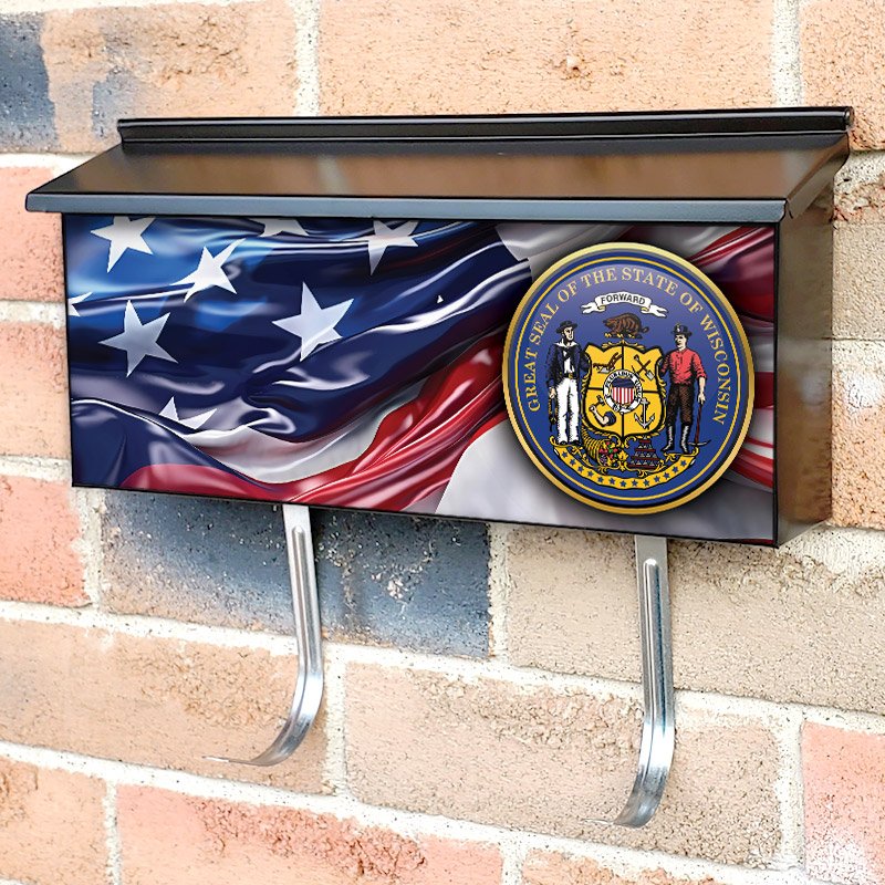 Applying your US States Wisconsin State Seal townhouse / ranch mailbox cover it’s pretty easy to convert your mailbox to a special and unique item. These covers require a flat surface, so they work with townhouse / ranch mailboxes that do not have any embossed decoration or signs. Magnetic mailbox covers work with steel boxes, for aluminum and plastic boxes we offer the self-adhesive vinyl covers. In case your mailbox doesn’t work with these covers, you can purchase the preinstalled cover on a brand new mailbox as well. Also, you can create your custom townhouse / ranch mailbox cover using you own pictures, adding your name, street number, etc.