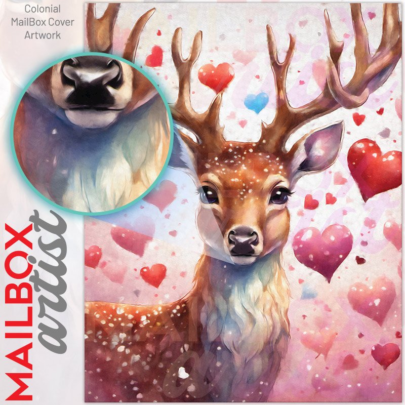 Valentine’s Day Deer with Hearts Colonial Mailbox Cover