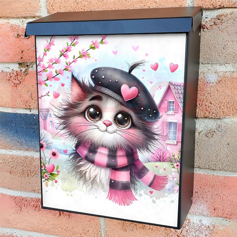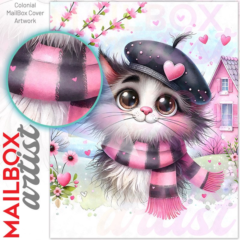 With this Valentine’s Day Kitten colonial mailbox cover it’s pretty easy to convert your mailbox to a special and unique item. These covers require a flat surface, so they work with colonial mailboxes that do not have any embossed decoration or signs. Magnetic mailbox covers work with steel colonial boxes only, while self-adhesive vinyl covers are available for aluminum, plastic and steel boxes. We also offer both self-adhesive and magnetic covers with regular opaque white vinyl or reflective vinyl, which works similarly to license plates or road signs. The reflective option makes the entire cover’s surface reflective, ensuring visibility at night. In case your mailbox doesn’t work with these covers, you can purchase the preinstalled cover on a brand new mailbox as well. Also, you can create your custom colonial mailbox cover using you own pictures, adding your name, street number, etc.