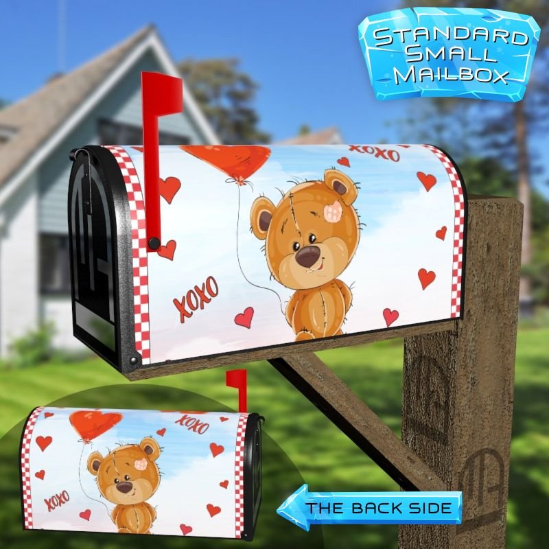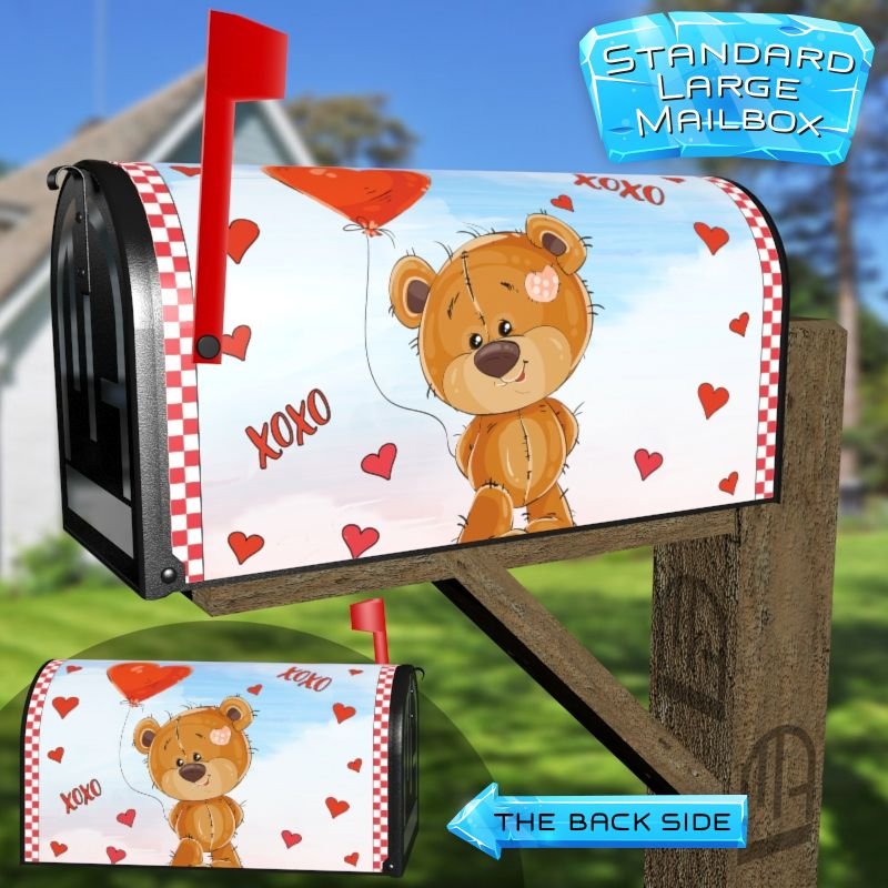 Dressing up your rural farm mailbox with the Valentine’s Teddy Bear with Balloon mailbox cover is an easy way to convert it into a unique and special item. These covers require a smooth surface, so they are compatible with rural farm mailboxes that do not have any embossed decorations or signs. Magnetic mailbox covers work with steel boxes only, while self-adhesive vinyl covers are available for aluminum, plastic and steel boxes. If your mailbox is not compatible with these covers, you can purchase a brand new mailbox with a preinstalled cover. Additionally, you have the option to create a custom rural farm mailbox cover with your own pictures, name, street number, etc.