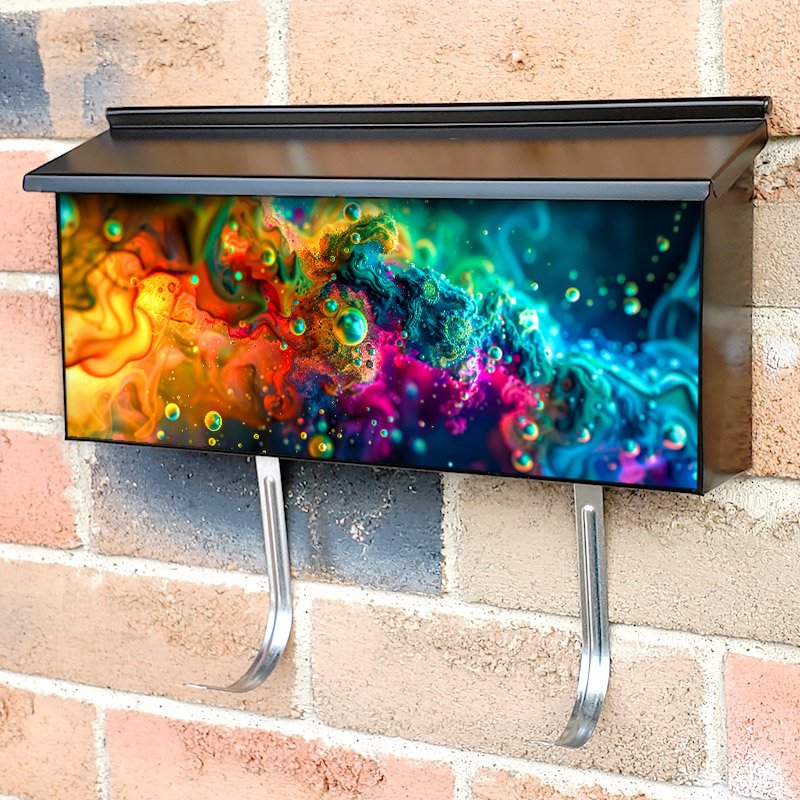 Applying your Vibrant Abstract Liquid Color Flow townhouse / ranch mailbox cover it’s pretty easy to convert your mailbox to a special and unique item. These covers require a flat surface, so they work with townhouse / ranch mailboxes that do not have any embossed decoration or signs. Magnetic mailbox covers work with steel boxes, for aluminum and plastic boxes we offer the self-adhesive vinyl covers. In case your mailbox doesn’t work with these covers, you can purchase the preinstalled cover on a brand new mailbox as well. Also, you can create your custom townhouse / ranch mailbox cover using you own pictures, adding your name, street number, etc.