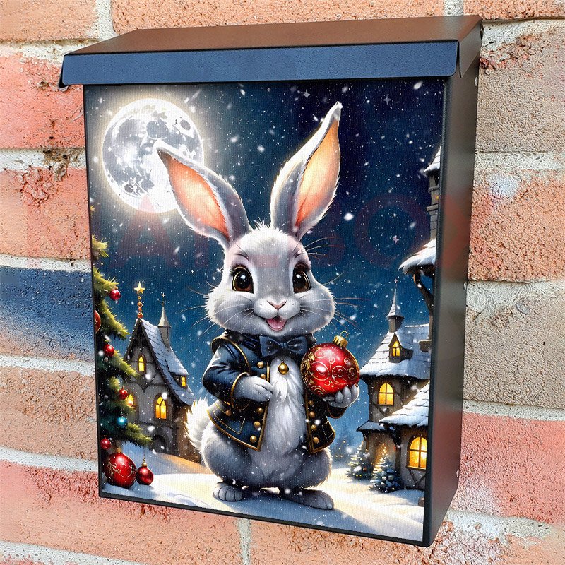With this Victorian Christmas Town and Bunny colonial mailbox cover it’s pretty easy to convert your mailbox to a special and unique item. These covers require a flat surface, so they work with colonial mailboxes that do not have any embossed decoration or signs. Magnetic mailbox covers work with steel colonial boxes only, while self-adhesive vinyl covers are available for aluminum, plastic and steel boxes. We also offer both self-adhesive and magnetic covers with regular opaque white vinyl or reflective vinyl, which works similarly to license plates or road signs. The reflective option makes the entire cover’s surface reflective, ensuring visibility at night. In case your mailbox doesn’t work with these covers, you can purchase the preinstalled cover on a brand new mailbox as well. Also, you can create your custom colonial mailbox cover using you own pictures, adding your name, street number, etc.