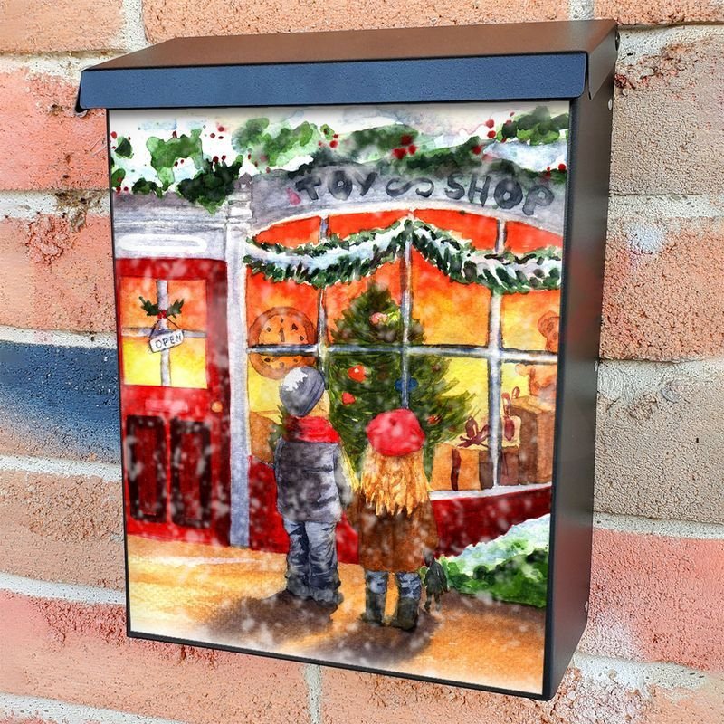 With this Victorian Christmas Toy Shop and Kids colonial mailbox cover it’s pretty easy to convert your mailbox to a special and unique item. These covers require a flat surface, so they work with colonial mailboxes that do not have any embossed decoration or signs. In case your mailbox doesn’t work with these covers, you can purchase the preinstalled cover on a brand new mailbox as well. Also, you can create your custom colonial mailbox cover using you own pictures, adding your name, street number, etc.