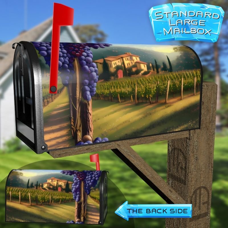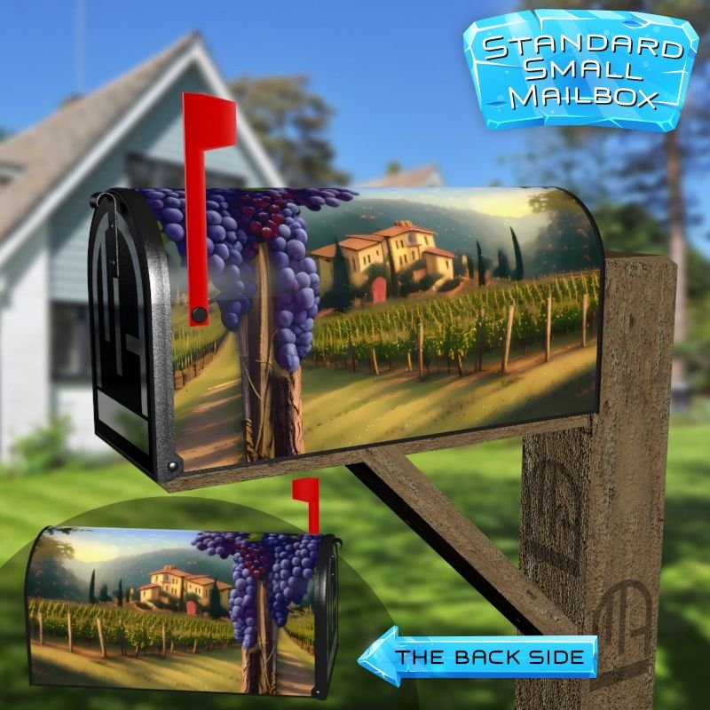 Dressing up your rural farm mailbox with the Vineyard in Tuscany mailbox cover is an easy way to convert it into a unique and special item. These covers require a smooth surface, so they are compatible with rural farm mailboxes that do not have any embossed decorations or signs. Magnetic mailbox covers work with steel boxes only, while self-adhesive vinyl covers are available for aluminum, plastic and steel boxes. If your mailbox is not compatible with these covers, you can purchase a brand new mailbox with a preinstalled cover. Additionally, you have the option to create a custom rural farm mailbox cover with your own pictures, name, street number, etc.