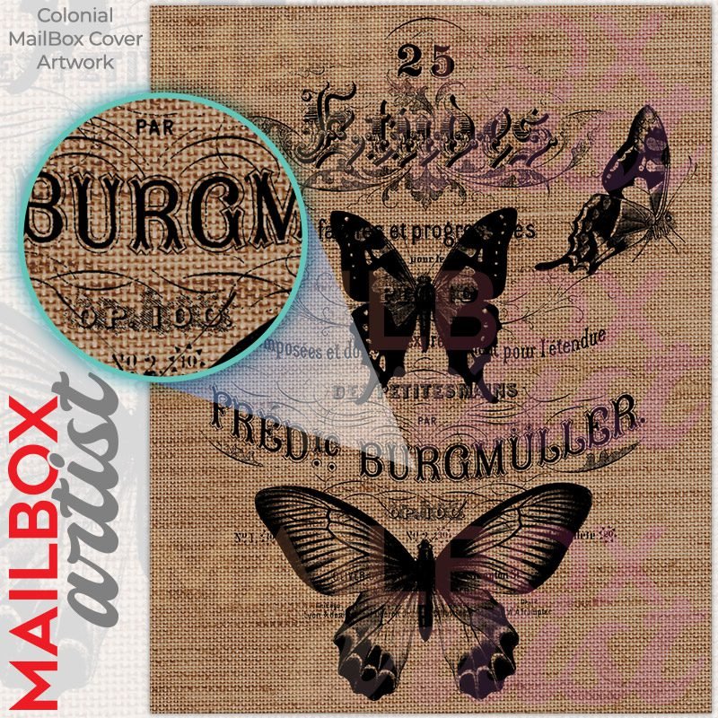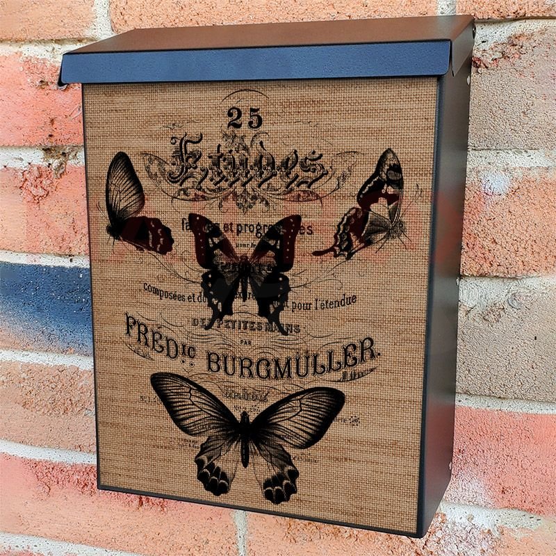 With this Vintage Butterflies Burlap Pattern colonial mailbox cover it’s pretty easy to convert your mailbox to a special and unique item. These covers require a flat surface, so they work with colonial mailboxes that do not have any embossed decoration or signs. Magnetic mailbox covers work with steel colonial boxes only, while self-adhesive vinyl covers are available for aluminum, plastic and steel boxes. We also offer both self-adhesive and magnetic covers with regular opaque white vinyl or reflective vinyl, which works similarly to license plates or road signs. The reflective option makes the entire cover’s surface reflective, ensuring visibility at night. In case your mailbox doesn’t work with these covers, you can purchase the preinstalled cover on a brand new mailbox as well. Also, you can create your custom colonial mailbox cover using you own pictures, adding your name, street number, etc.