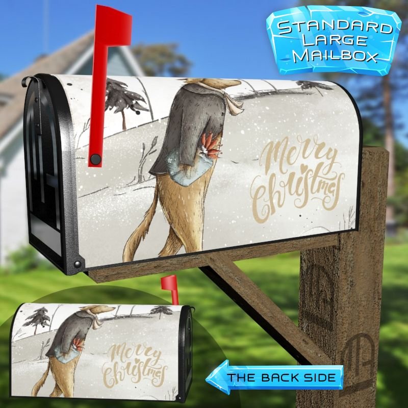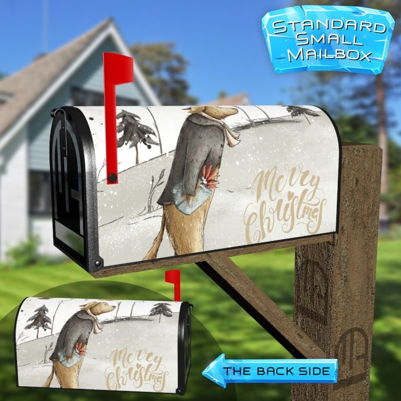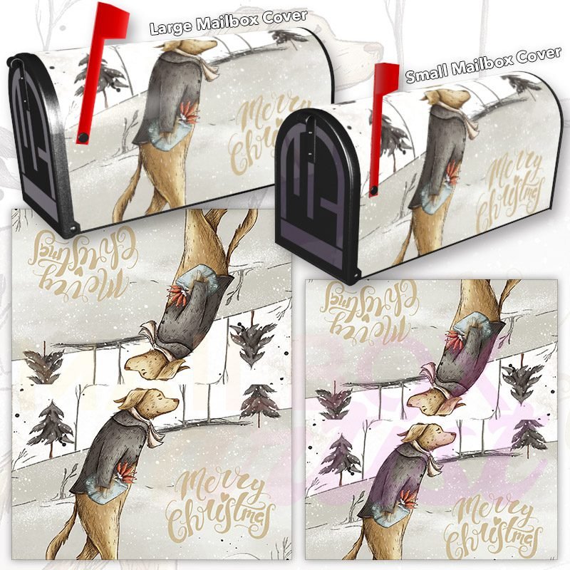 Dressing up your rural farm mailbox with the Vintage Christmas Dogs #3 mailbox cover is an easy way to convert it into a unique and special item. These covers require a smooth surface, so they are compatible with rural farm mailboxes that do not have any embossed decorations or signs. Magnetic mailbox covers work with steel boxes only, while self-adhesive vinyl covers are available for aluminum, plastic and steel boxes. If your mailbox is not compatible with these covers, you can purchase a brand new mailbox with a preinstalled cover. Additionally, you have the option to create a custom rural farm mailbox cover with your own pictures, name, street number, etc.