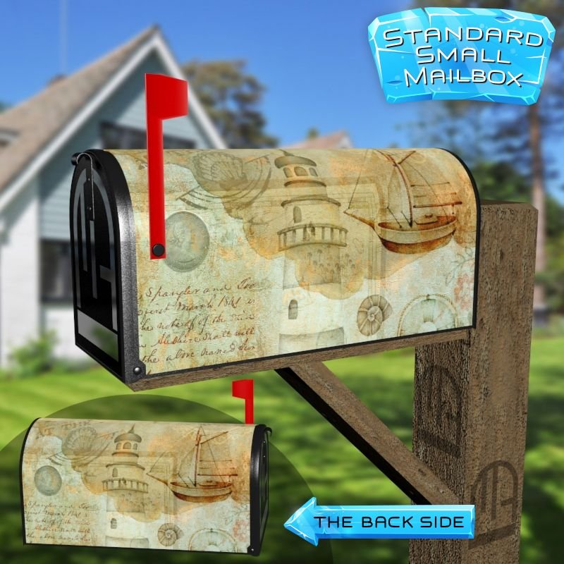 Dressing up your rural farm mailbox with the Vintage Lighthouse Design #2 mailbox cover is an easy way to convert it into a unique and special item. These covers require a smooth surface, so they are compatible with rural farm mailboxes that do not have any embossed decorations or signs. Magnetic mailbox covers work with steel boxes only, while self-adhesive vinyl covers are available for aluminum, plastic and steel boxes. If your mailbox is not compatible with these covers, you can purchase a brand new mailbox with a preinstalled cover. Additionally, you have the option to create a custom rural farm mailbox cover with your own pictures, name, street number, etc.