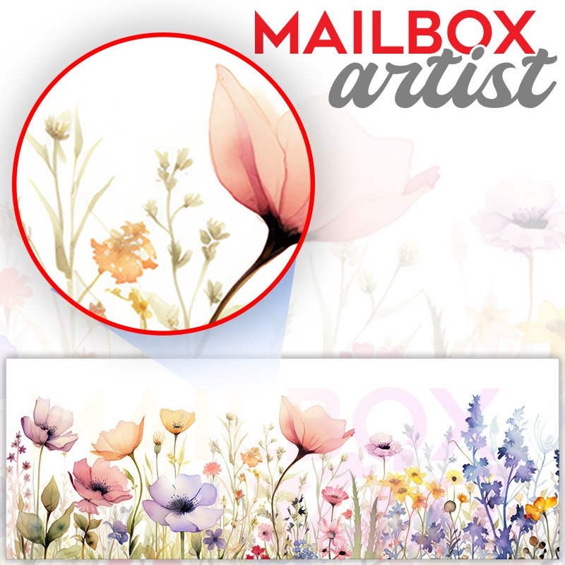 Applying your Watercolor Floral Border townhouse / ranch mailbox cover it’s pretty easy to convert your mailbox to a special and unique item. These covers require a flat surface, so they work with townhouse / ranch mailboxes that do not have any embossed decoration or signs. Magnetic mailbox covers work with steel boxes, for aluminum and plastic boxes we offer the self-adhesive vinyl covers. In case your mailbox doesn’t work with these covers, you can purchase the preinstalled cover on a brand new mailbox as well. Also, you can create your custom townhouse / ranch mailbox cover using you own pictures, adding your name, street number, etc.