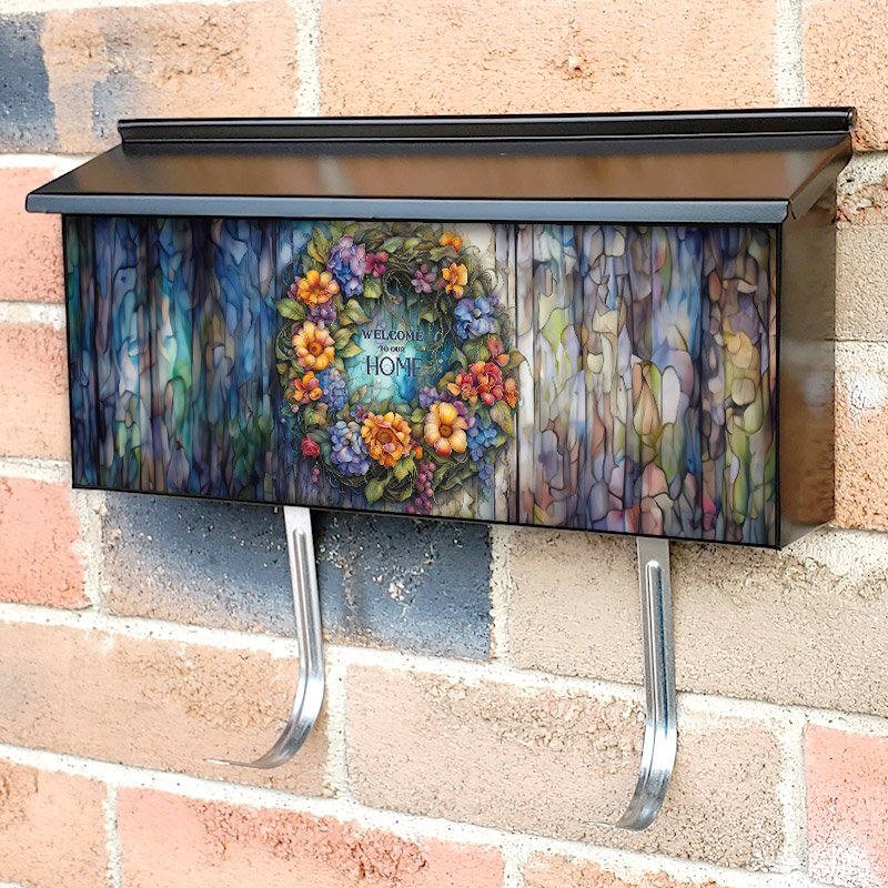 Applying your Welcome to Our Home Wreath townhouse / ranch mailbox cover it’s pretty easy to convert your mailbox to a special and unique item. These covers require a flat surface, so they work with townhouse / ranch mailboxes that do not have any embossed decoration or signs. Magnetic mailbox covers work with steel boxes, for aluminum and plastic boxes we offer the self-adhesive vinyl covers. In case your mailbox doesn’t work with these covers, you can purchase the preinstalled cover on a brand new mailbox as well. Also, you can create your custom townhouse / ranch mailbox cover using you own pictures, adding your name, street number, etc.