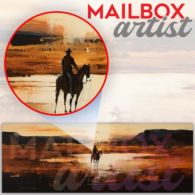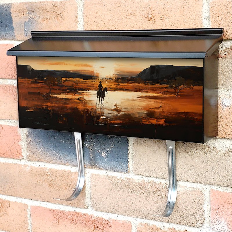 Applying your Western Cowboy Desert Horse townhouse / ranch mailbox cover it’s pretty easy to convert your mailbox to a special and unique item. These covers require a flat surface, so they work with townhouse / ranch mailboxes that do not have any embossed decoration or signs. Magnetic mailbox covers work with steel boxes, for aluminum and plastic boxes we offer the self-adhesive vinyl covers. In case your mailbox doesn’t work with these covers, you can purchase the preinstalled cover on a brand new mailbox as well. Also, you can create your custom townhouse / ranch mailbox cover using you own pictures, adding your name, street number, etc.