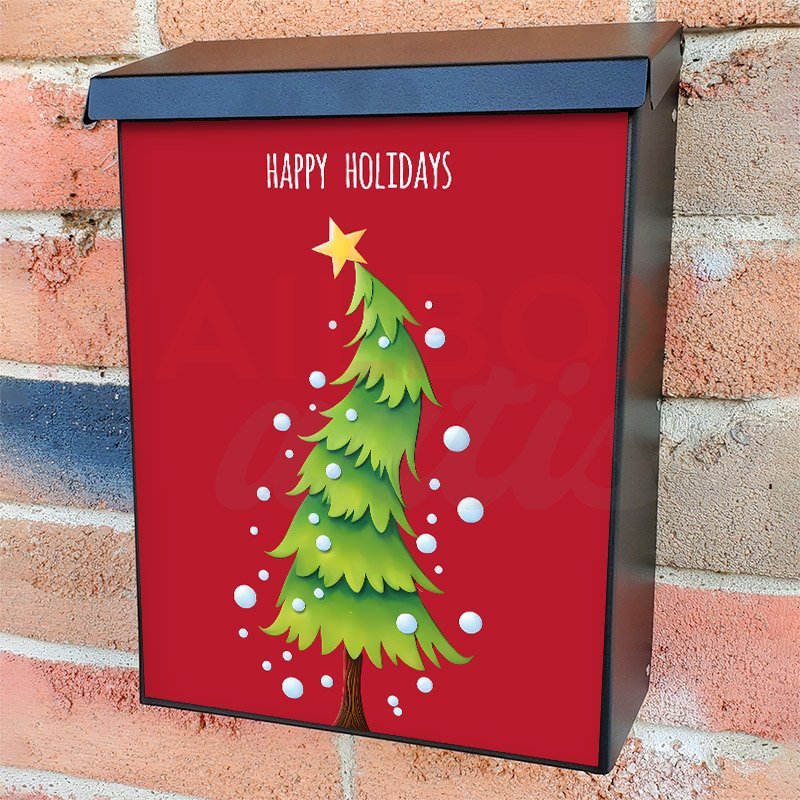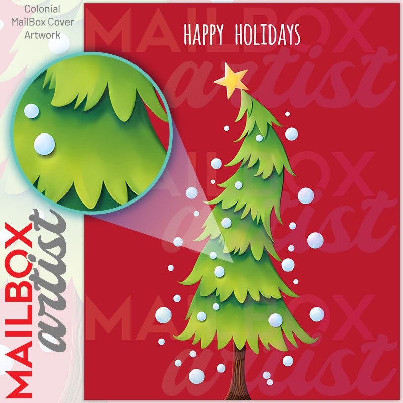 With this Whimsical Christmas Tree colonial mailbox cover it’s pretty easy to convert your mailbox to a special and unique item. These covers require a flat surface, so they work with colonial mailboxes that do not have any embossed decoration or signs. Magnetic mailbox covers work with steel colonial boxes only, while self-adhesive vinyl covers are available for aluminum, plastic and steel boxes. We also offer both self-adhesive and magnetic covers with regular opaque white vinyl or reflective vinyl, which works similarly to license plates or road signs. The reflective option makes the entire cover’s surface reflective, ensuring visibility at night. In case your mailbox doesn’t work with these covers, you can purchase the preinstalled cover on a brand new mailbox as well. Also, you can create your custom colonial mailbox cover using you own pictures, adding your name, street number, etc.