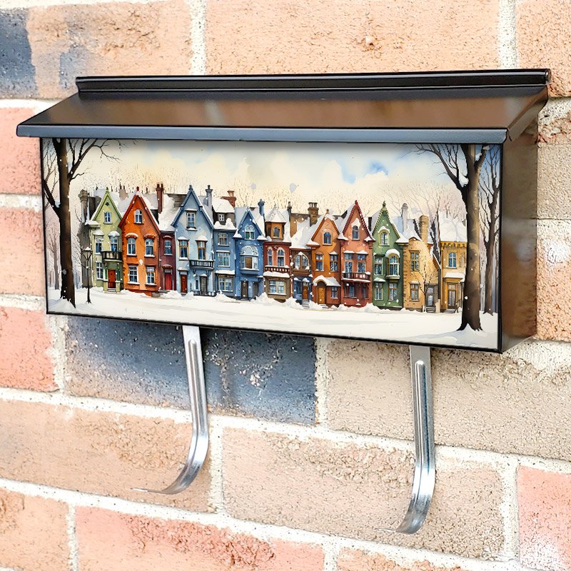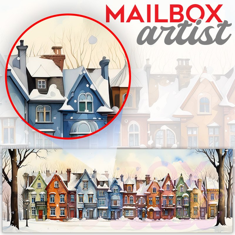 Applying your Whimsical Snowy Canadian City Waterpainted townhouse / ranch mailbox cover it’s pretty easy to convert your mailbox to a special and unique item. These covers require a flat surface, so they work with townhouse / ranch mailboxes that do not have any embossed decoration or signs. Magnetic mailbox covers work with steel boxes, for aluminum and plastic boxes we offer the self-adhesive vinyl covers. In case your mailbox doesn’t work with these covers, you can purchase the preinstalled cover on a brand new mailbox as well. Also, you can create your custom townhouse / ranch mailbox cover using you own pictures, adding your name, street number, etc.