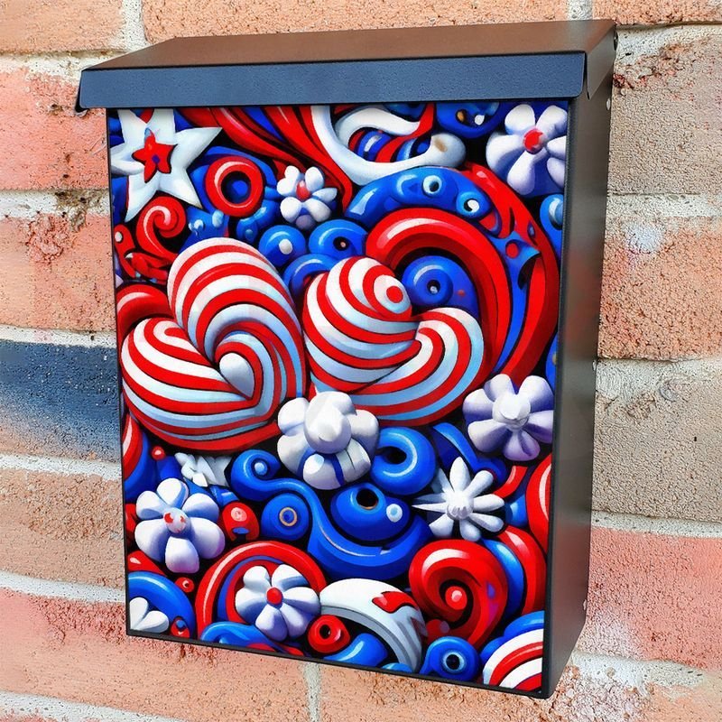 This Whimsical USA Pattern mailbox design was created by Krisztina Soos