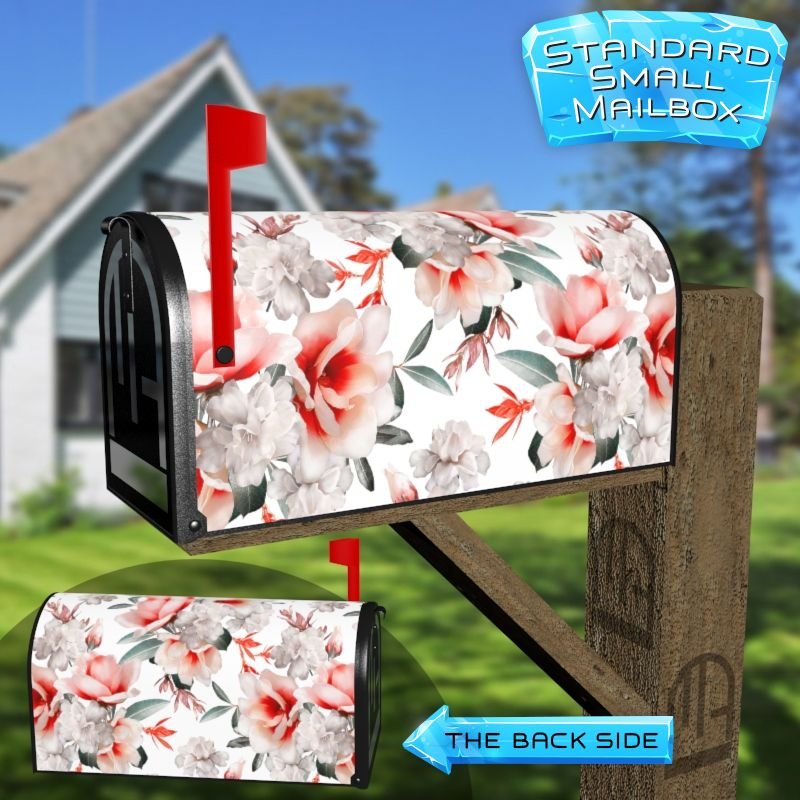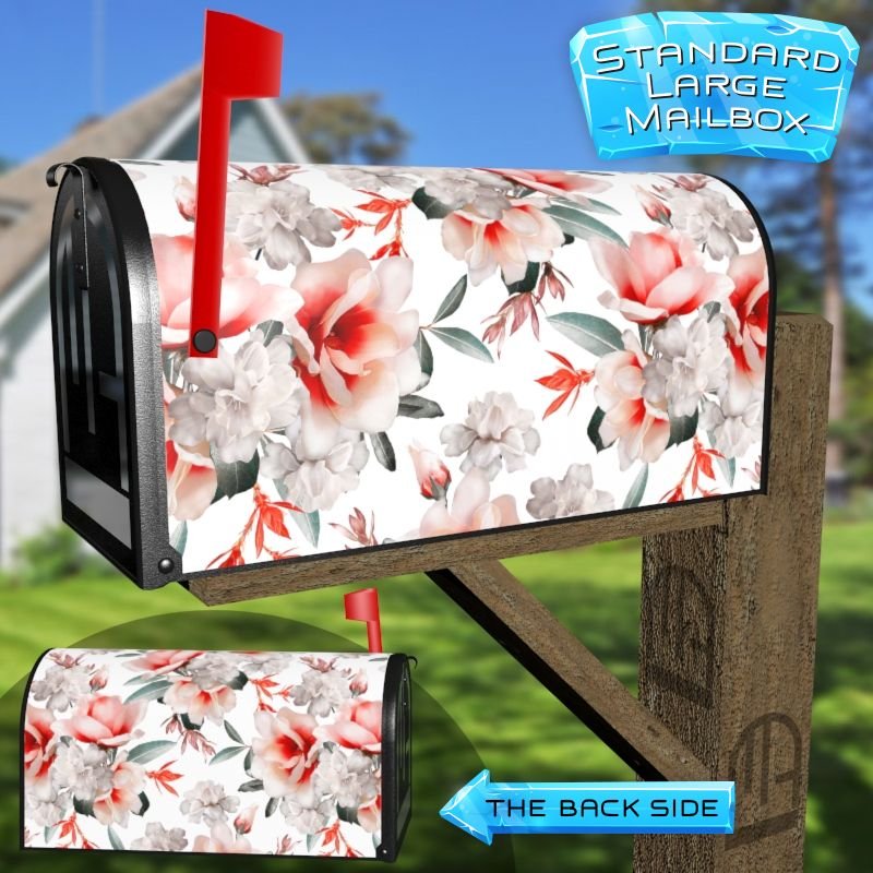 Dressing up your rural farm mailbox with the White and Pink Flowers mailbox cover is an easy way to convert it into a unique and special item. These covers require a smooth surface, so they are compatible with rural farm mailboxes that do not have any embossed decorations or signs. Magnetic mailbox covers work with steel boxes only, while self-adhesive vinyl covers are available for aluminum, plastic and steel boxes. If your mailbox is not compatible with these covers, you can purchase a brand new mailbox with a preinstalled cover. Additionally, you have the option to create a custom rural farm mailbox cover with your own pictures, name, street number, etc.