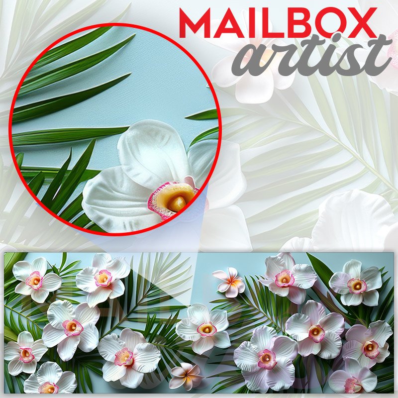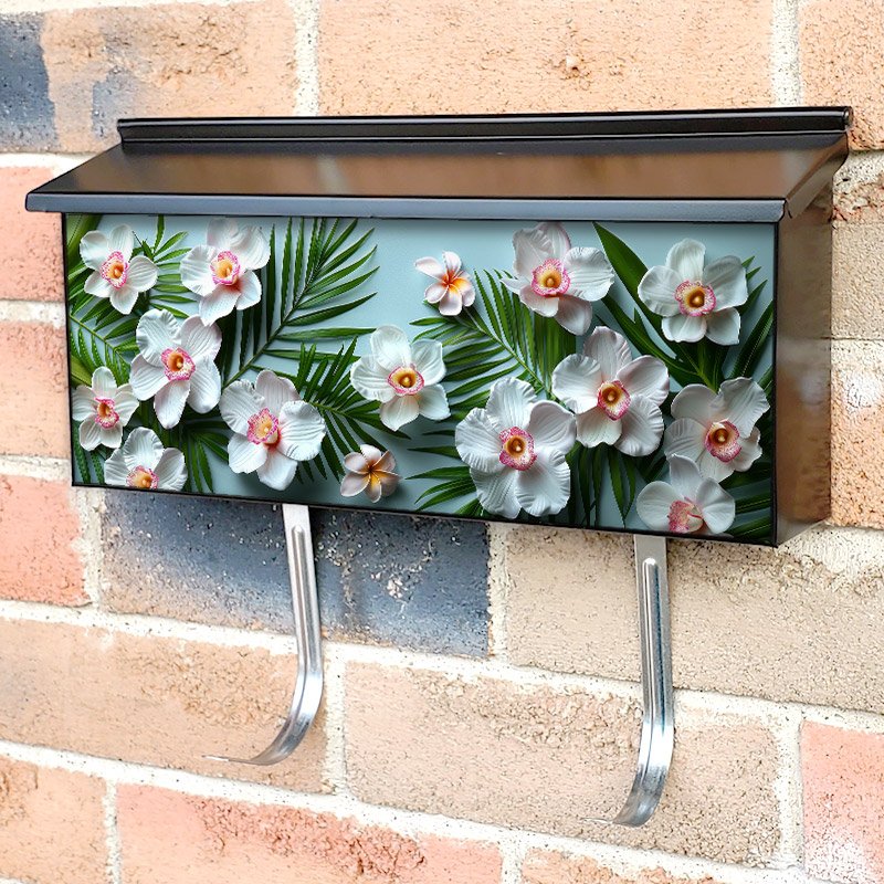 Applying your White And Pink Flowers On Blue Background townhouse / ranch mailbox cover it’s pretty easy to convert your mailbox to a special and unique item. These covers require a flat surface, so they work with townhouse / ranch mailboxes that do not have any embossed decoration or signs. Magnetic mailbox covers work with steel boxes, for aluminum and plastic boxes we offer the self-adhesive vinyl covers. In case your mailbox doesn’t work with these covers, you can purchase the preinstalled cover on a brand new mailbox as well. Also, you can create your custom townhouse / ranch mailbox cover using you own pictures, adding your name, street number, etc.
