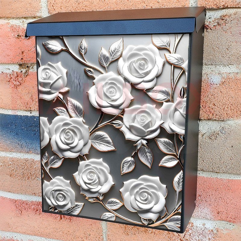 This White Metal Roses mailbox design was created by Krisztina Soos