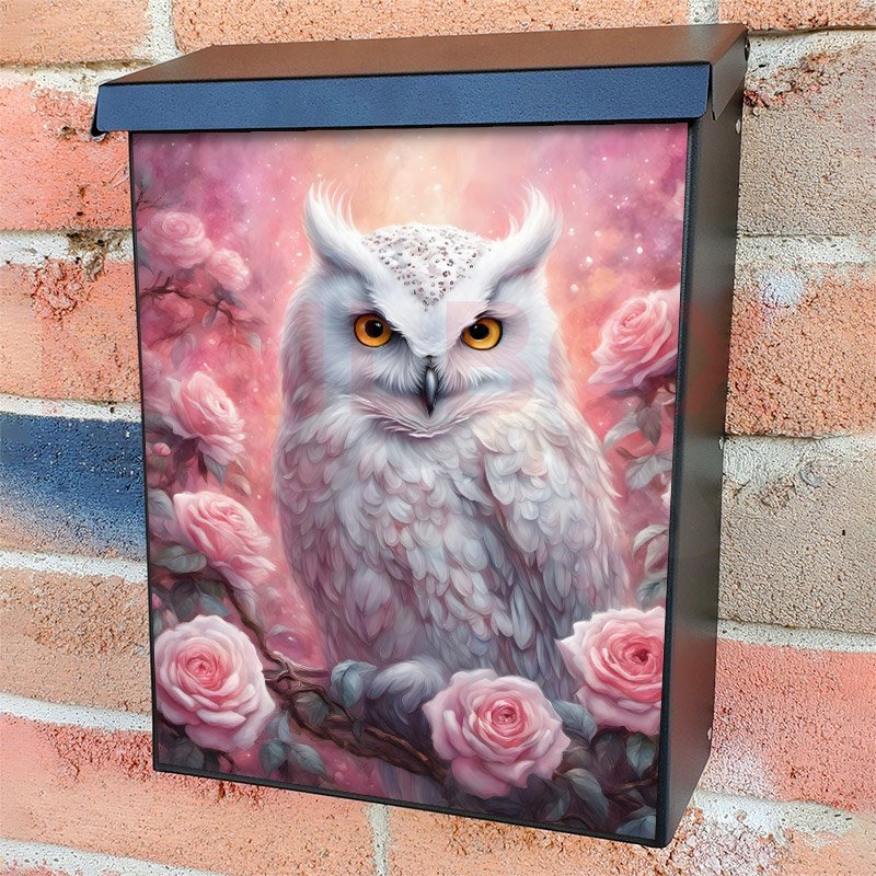 This White Owl and Roses mailbox design was created by Krisztina Soos
