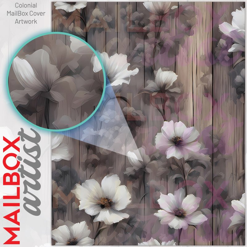 White Wildflowers on Wood Design Colonial Mailbox Cover