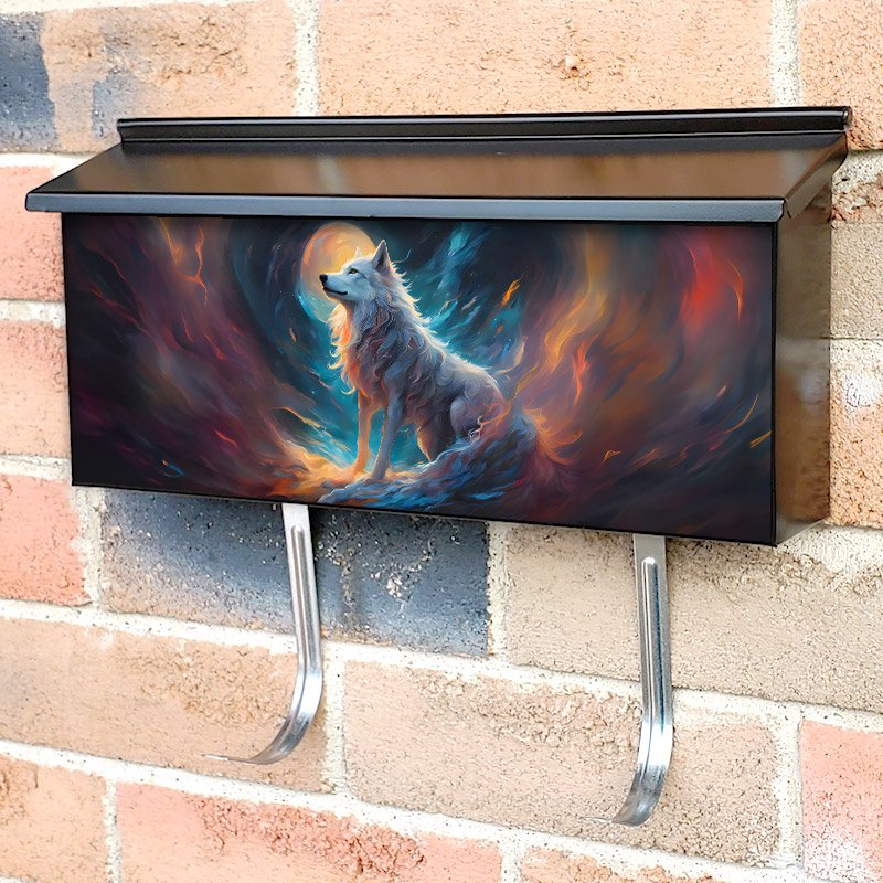 Applying your White Wolf and Full Moon townhouse / ranch mailbox cover it’s pretty easy to convert your mailbox to a special and unique item. These covers require a flat surface, so they work with townhouse / ranch mailboxes that do not have any embossed decoration or signs. Magnetic mailbox covers work with steel boxes, for aluminum and plastic boxes we offer the self-adhesive vinyl covers. In case your mailbox doesn’t work with these covers, you can purchase the preinstalled cover on a brand new mailbox as well. Also, you can create your custom townhouse / ranch mailbox cover using you own pictures, adding your name, street number, etc.