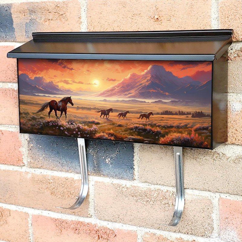 Applying your Wild Horses On Field Meadow townhouse / ranch mailbox cover it’s pretty easy to convert your mailbox to a special and unique item. These covers require a flat surface, so they work with townhouse / ranch mailboxes that do not have any embossed decoration or signs. Magnetic mailbox covers work with steel boxes, for aluminum and plastic boxes we offer the self-adhesive vinyl covers. In case your mailbox doesn’t work with these covers, you can purchase the preinstalled cover on a brand new mailbox as well. Also, you can create your custom townhouse / ranch mailbox cover using you own pictures, adding your name, street number, etc.