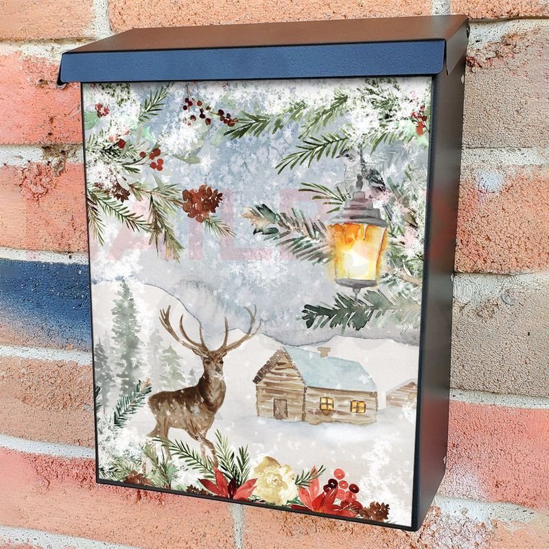 With this Winter Cabin and a Deer colonial mailbox cover it’s pretty easy to convert your mailbox to a special and unique item. These covers require a flat surface, so they work with colonial mailboxes that do not have any embossed decoration or signs. In case your mailbox doesn’t work with these covers, you can purchase the preinstalled cover on a brand new mailbox as well. Also, you can create your custom colonial mailbox cover using you own pictures, adding your name, street number, etc.