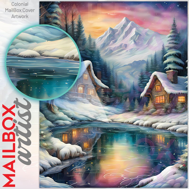 With this Winter Cottages at the Lake colonial mailbox cover it’s pretty easy to convert your mailbox to a special and unique item. These covers require a flat surface, so they work with colonial mailboxes that do not have any embossed decoration or signs. Magnetic mailbox covers work with steel colonial boxes only, while self-adhesive vinyl covers are available for aluminum, plastic and steel boxes. We also offer both self-adhesive and magnetic covers with regular opaque white vinyl or reflective vinyl, which works similarly to license plates or road signs. The reflective option makes the entire cover’s surface reflective, ensuring visibility at night. In case your mailbox doesn’t work with these covers, you can purchase the preinstalled cover on a brand new mailbox as well. Also, you can create your custom colonial mailbox cover using you own pictures, adding your name, street number, etc.