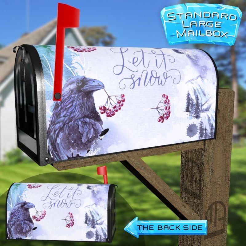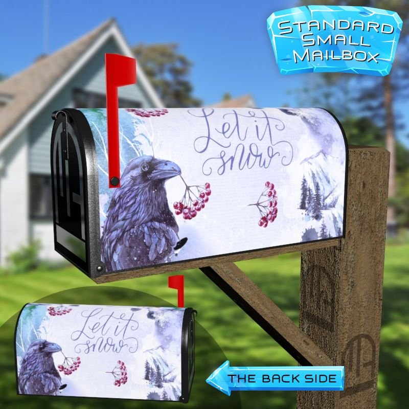 Dressing up your rural farm mailbox with the Winter Raven mailbox cover is an easy way to convert it into a unique and special item. These covers require a smooth surface, so they are compatible with rural farm mailboxes that do not have any embossed decorations or signs. Magnetic mailbox covers work with steel boxes only, while self-adhesive vinyl covers are available for aluminum, plastic and steel boxes. If your mailbox is not compatible with these covers, you can purchase a brand new mailbox with a preinstalled cover. Additionally, you have the option to create a custom rural farm mailbox cover with your own pictures, name, street number, etc.