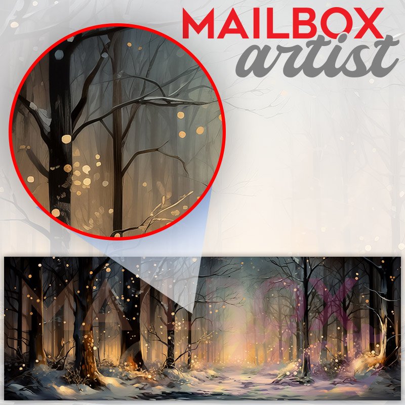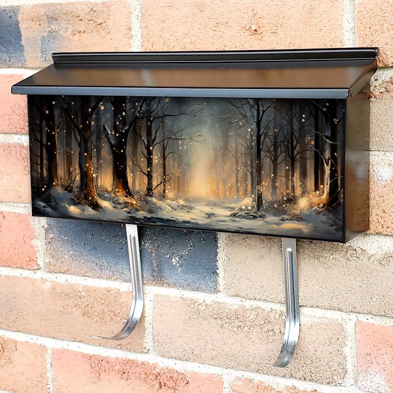 Applying your Winter Twinkling Fairy Lights In Snow Scene townhouse / ranch mailbox cover it’s pretty easy to convert your mailbox to a special and unique item. These covers require a flat surface, so they work with townhouse / ranch mailboxes that do not have any embossed decoration or signs. Magnetic mailbox covers work with steel boxes, for aluminum and plastic boxes we offer the self-adhesive vinyl covers. In case your mailbox doesn’t work with these covers, you can purchase the preinstalled cover on a brand new mailbox as well. Also, you can create your custom townhouse / ranch mailbox cover using you own pictures, adding your name, street number, etc.