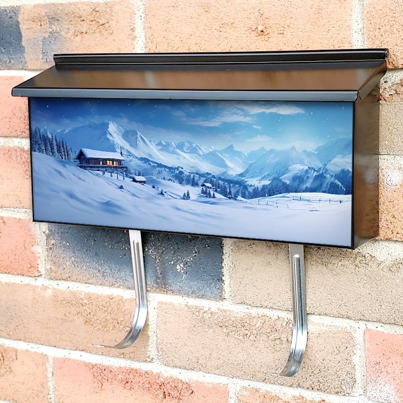 Applying your Winter Wonderland Panorama Wooden House In Snowy Mountains townhouse / ranch mailbox cover it’s pretty easy to convert your mailbox to a special and unique item. These covers require a flat surface, so they work with townhouse / ranch mailboxes that do not have any embossed decoration or signs. Magnetic mailbox covers work with steel boxes, for aluminum and plastic boxes we offer the self-adhesive vinyl covers. In case your mailbox doesn’t work with these covers, you can purchase the preinstalled cover on a brand new mailbox as well. Also, you can create your custom townhouse / ranch mailbox cover using you own pictures, adding your name, street number, etc.
