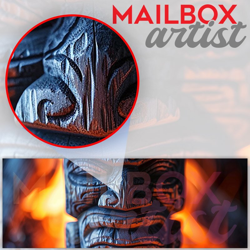 This Woodblock Tiki 2 mailbox design was created by Krisztina Soos