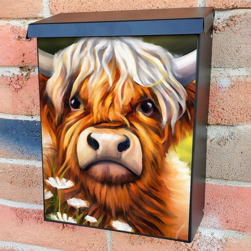 This Young Highland Cow mailbox design was created by Krisztina Soos